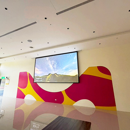 此外,員工餐廳為企業文化與內部溝通交流的重要場域,有鑒於此,本案在餐廳區域亦透過專業的IMIS 分佈式影音管理系統整合簡化後,可一鍵開啟投影機及電動布幕,並藉由環控系統控制POLY G62視訊會議主機,將視訊會議的功能整合至環控系統中,在視訊會議進行時能夠快速切換不同攝影機之畫面、有線及無線投影的簡報內容,並透過環控面板的音量滑軌程式連動SHURE P300混音器快速調整音量,操作上直覺簡便,使企業公告、品牌影音、即時數據或緊急通報等內容,能高效及時地宣導給全體人員。