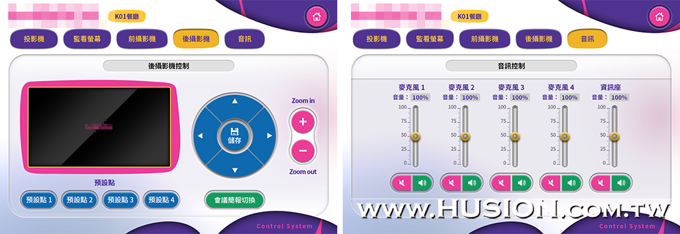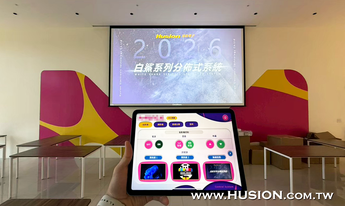 本案我們協助經銷商為南部科學園區一間歷史悠久且橫跨電子科技、醫療保健與生命科學三大領域的跨國科學與科技集團,新建之二間會議室與餐廳中,量身規劃建置一套Husion湖森-IMIS分佈式影音控制傳輸管理系統,使操作人員可透過手持無線平板電腦(副控)在現場及時操控,或音控人員也可透過安裝在機房的Husion CCU DB10E-T 10吋交互式彩色觸控面板(主控)遠端協助操控,主控和副控可雙向回傳設備控制碼,確保每場會議皆能穩定進行無延遲。