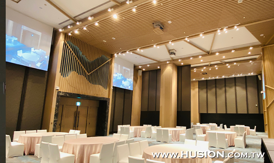 我們協助經銷商在該酒店的商務空間建置了一套 Husion湖森-IMIS分佈式影音控制傳輸管理系統,可容納近400人的三間宴會廳與四間會議廳,使用多台手持平板電腦和 Husion CCU DB10E-T 10吋交互式彩色觸控面板 操控系統,支援多場域遠端互聯互通、影音設備控制與全方位攝像追蹤和錄影投射,傳輸距離高達400公尺,內建零延遲、切換訊號時畫面無殘影功能,並客製化系統頁面設計,可直覺性簡易操控,拓展頂級商務客群。