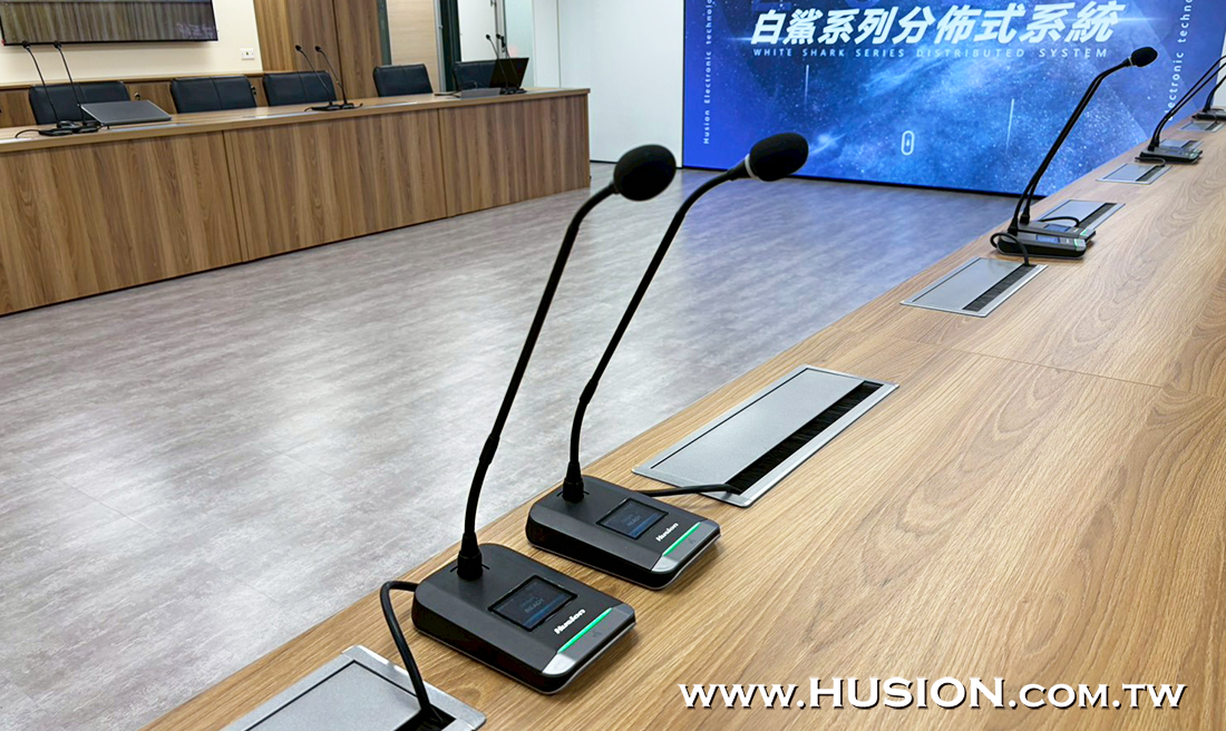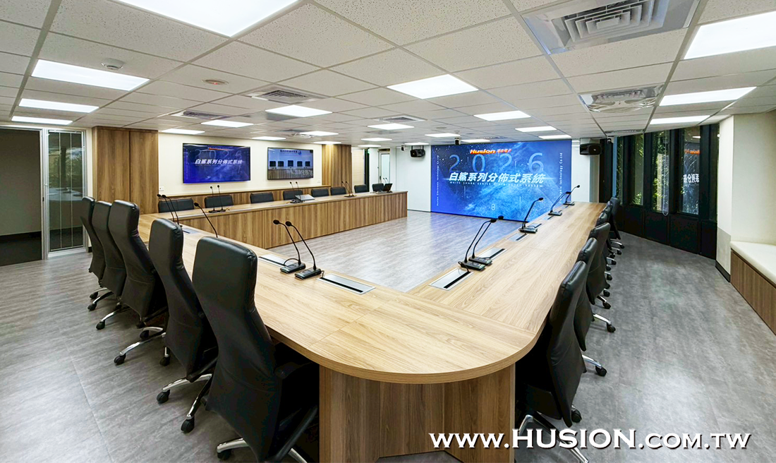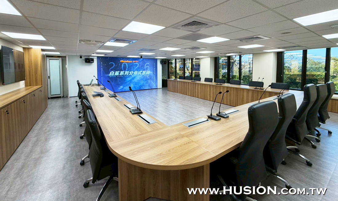 此外會議系統中配置了Husion DCU 2200-M全數位有線會議系統主機與主列席麥克風,主機內建高性能CPU處理器,處理速度更快,音質更佳,支援討論、影像追蹤等功能,適用於各類型會議室、報告廳、新聞發佈廳等場景,並支援多種會議模式功能,例如FIFO先進先出模式、自由模式、聲控模式,也可限制發言人數等;此外Husion DCU 2245C桌上型主/列席會議發言單元採用金屬面板設計,整體外型高檔莊重美觀,收音靈敏、語音清晰防抗干擾,能高效穩定會議的進行。