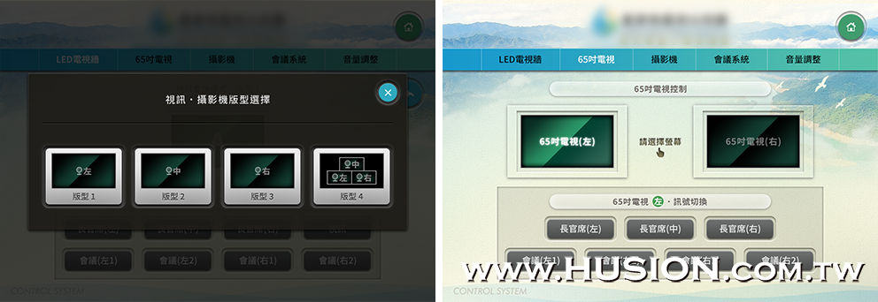 視訊攝影機版型選擇頁及65吋電視控制頁: