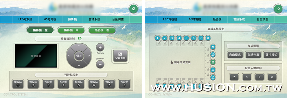 攝影機選擇控制頁及會議系統控制頁: