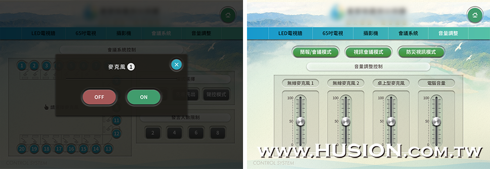 會議系統麥克風設定頁及音量調整頁: