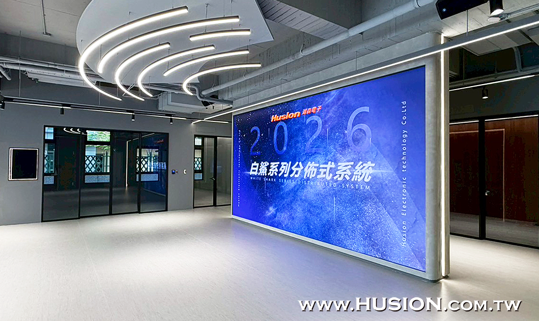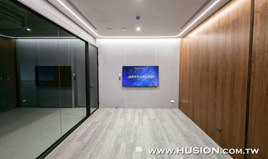 本案我們協助經銷商為國內知名智慧製造研發公司規畫打造專業環控會議室系統,範圍涵蓋會議研討展示大廳及二間獨立會議室,展示大廳搭載210吋LED電視牆,獨立會議室則分別搭配65吋 4K高畫質顯示器,並結合專業的Husion湖森-分佈式影音控制傳輸管理系統,使操作人員可以在現場及時地使用手持無線平板電腦,並依照會議實際需求便捷地操控各項系統設定;此外內部機櫃也設有Husion CCU DB10E-T 10吋交互式彩色觸控面板(嵌入式)提供遠端操控備援,以確保所有研討會議或發表會皆能無延遲順利進行,主控和副控可雙向回傳設備控制碼,實現遠距離影音控制訊號互聯互通之特色功能。