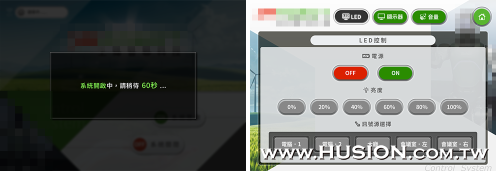 系統開啟等待頁及LED控制頁: